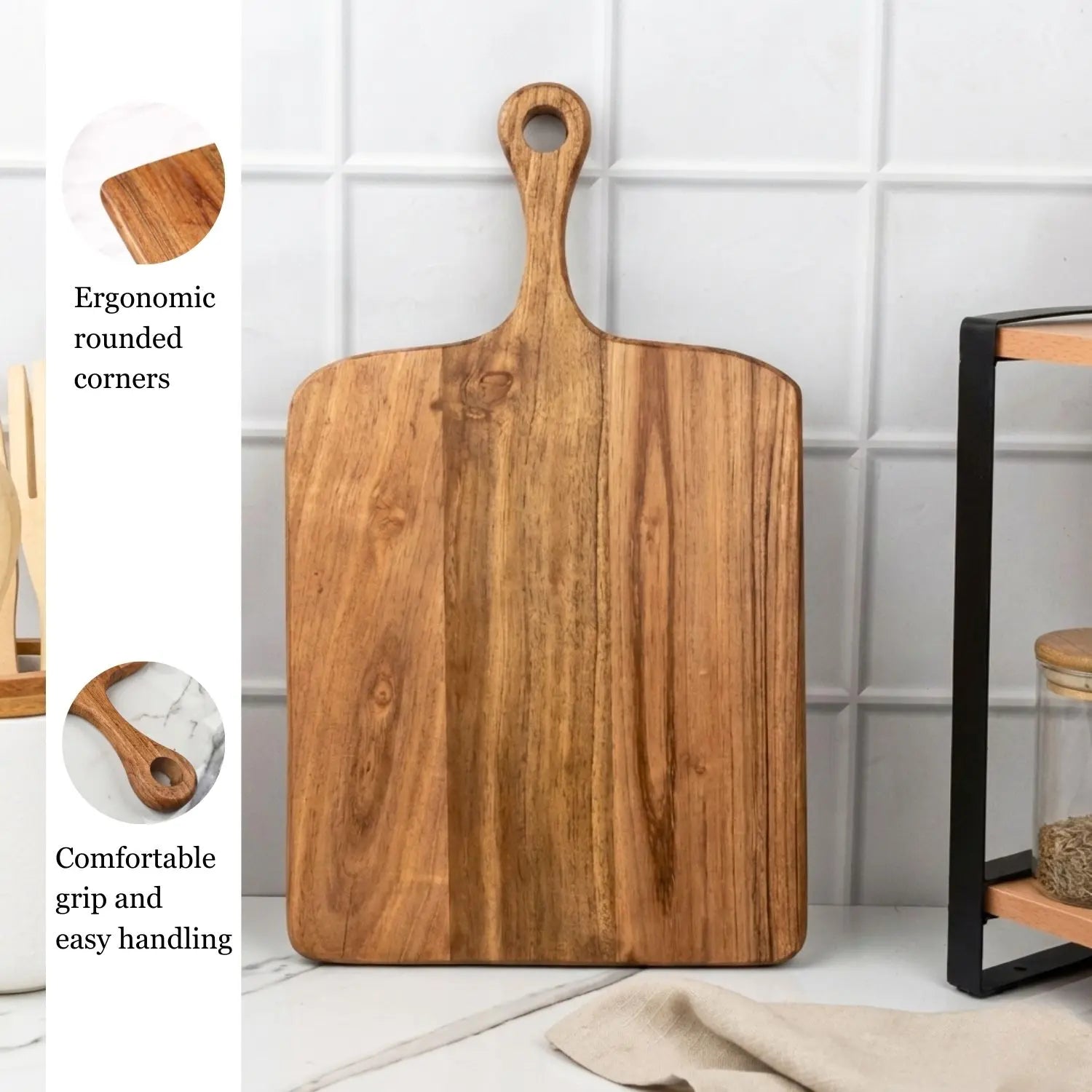 Prepare meals with ease and style using the Acacia Wood Chopping Board. Crafted from durable, natural acacia wood, it offers a sturdy and reliable surface for cutting, slicing, and chopping. Its smooth finish is gentle on knives, while the solid build prevents slips and reduces mess in the kitchen. Doubles as a beautiful serving board for cheese, fruits, or appetizers, making it both practical and versatile. Strong, long-lasting, and elegant—a must-have for every kitchen.