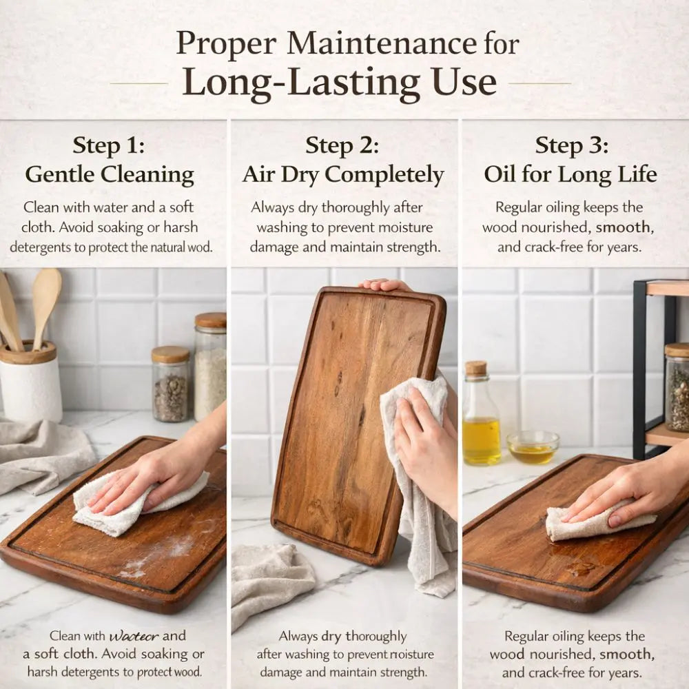 Easy Maintenance: Cleans with warm water and soap; occasional oiling keeps wood vibrant.