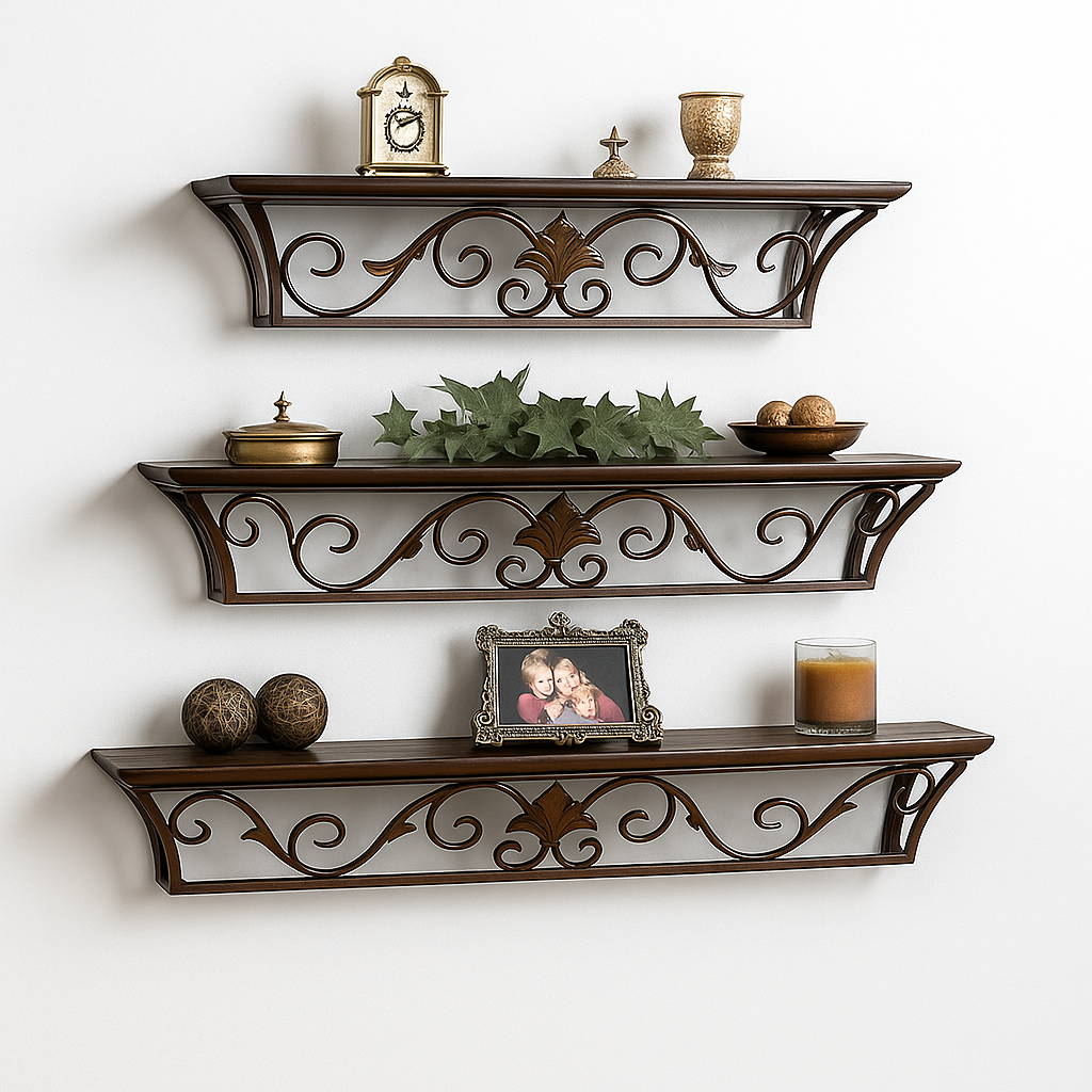 Add a touch of charm and function to your home with this Space Saving Hanging Wall Shelf Rack. Crafted to suit both traditional and modern interiors, it is perfect for your living room, bedroom, or kitchen—offering both style and utility in one compact design. The glossy finish and elegant detailing instantly uplift your space, while the ready-to-mount design makes installation quick and effortless. Use it to display decorative items, store everyday essentials, or simply add character to an empty wall.