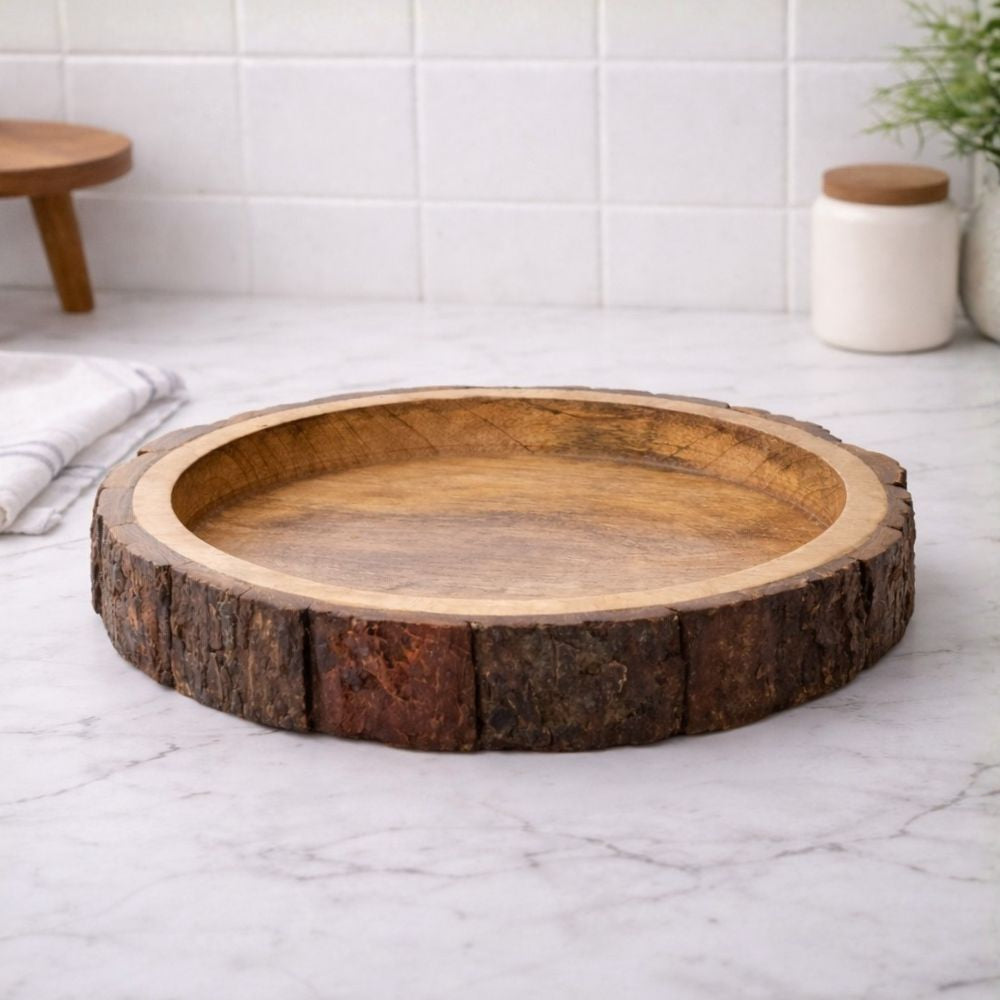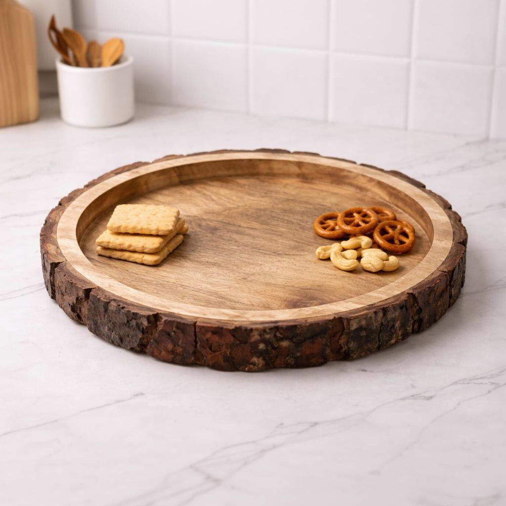 Serve with style and strength using this beautifully handcrafted round wooden serving tray platter made from premium Sheesham wood. Designed for modern living, this tray blends elegance with everyday functionβperfect for serving breakfast in bed, evening snacks, drinks, or desserts with ease.