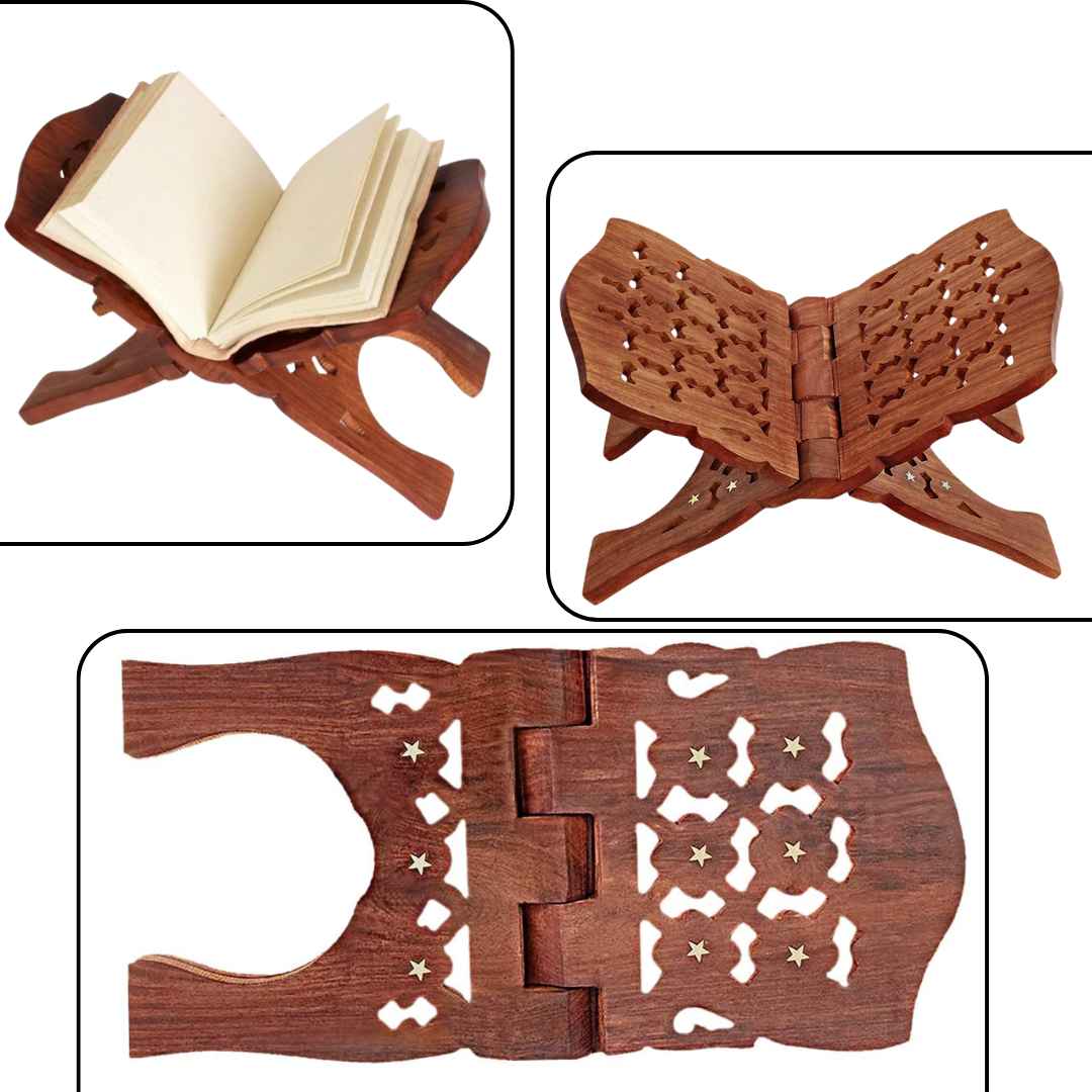 Rooted in tradition and carved from the heart of Sheesham wood, this foldable Rehal is a quiet companion for your most sacred moments. Its design speaks of patience and intention—crafted to gently hold your holy texts, guiding your reading without interruption.Fold it, carry it, unfold it—wherever you go, it brings with it a sense of calm and purpose.