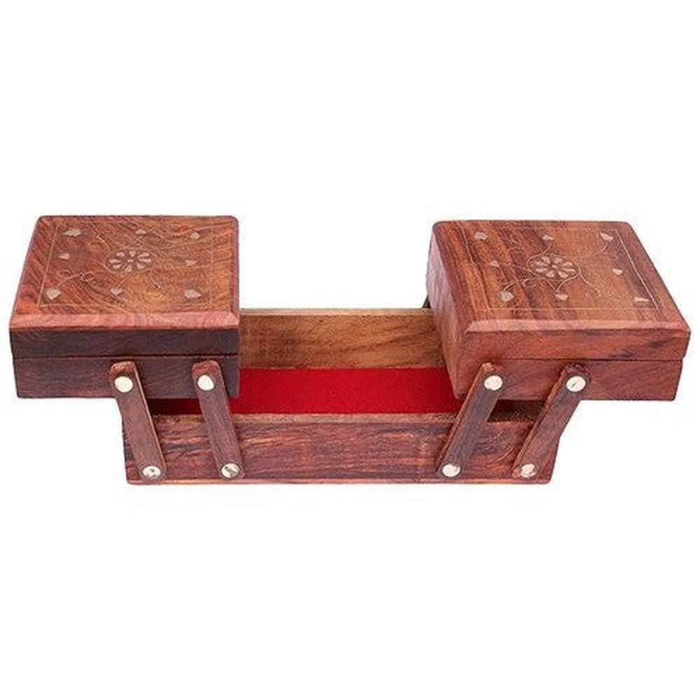 Elevate your storage game with this hand-carved wooden jewellery box, designed to keep your cherished pieces safe, organized, and always within reach. Crafted with intricate modern floral motifs, the box blends timeless tradition with refined sophistication. Its rich wooden finish and spacious interior make it perfect for storing everything from daily-wear accessories to treasured heirlooms.Β