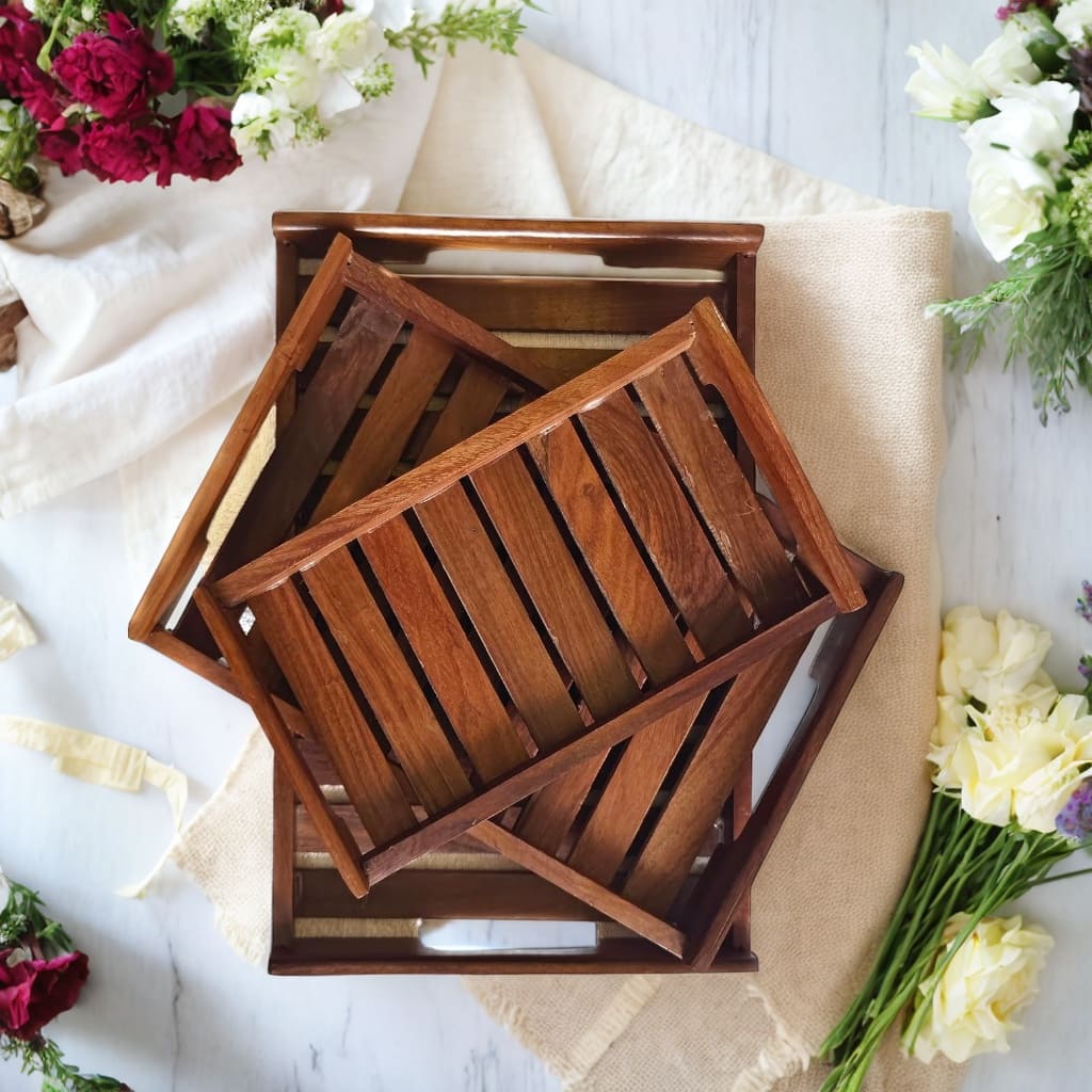 Stackable, stylish, and made to solve your day-to-day clutter problems with grace, they’re just as perfect for serving as they are for styling.This Set of 3 Wooden Serving Trays, handcrafted from premium sheesham wood, is designed to add both charm and functionality to your daily routine. Whether you're serving breakfast in bed, hosting guests with tea and snacks, or organizing your kitchen and bar essentials, these trays bring a touch of modern elegance to every corner of your home