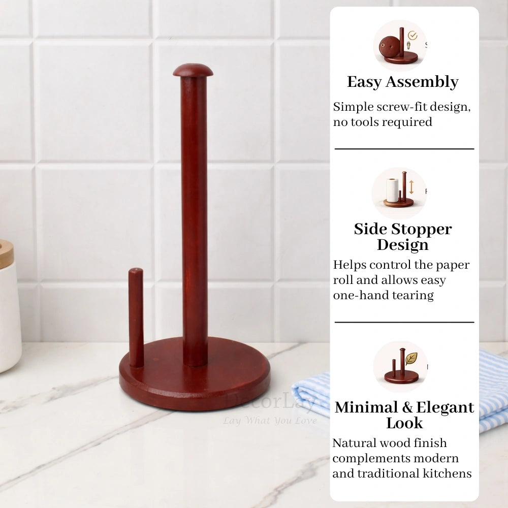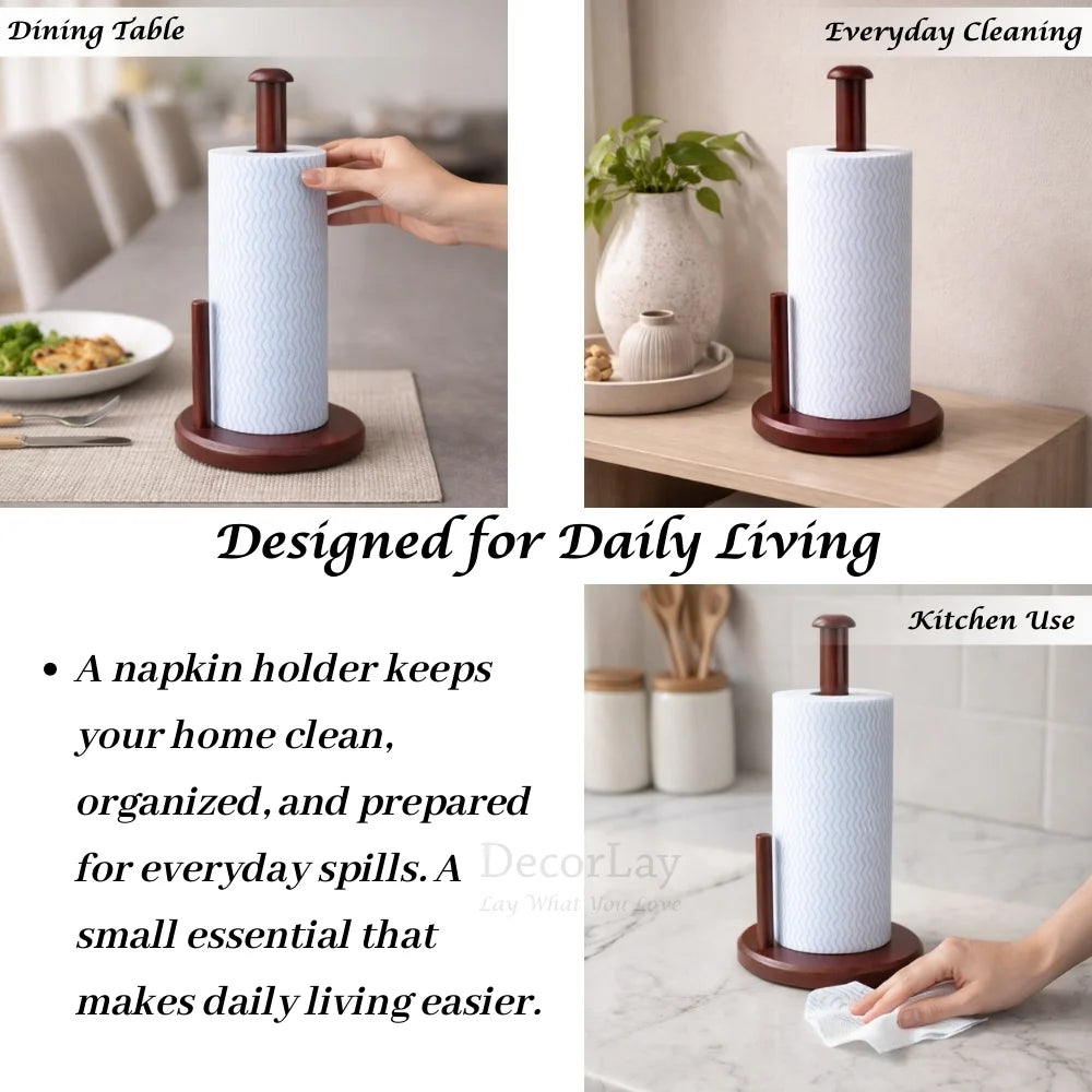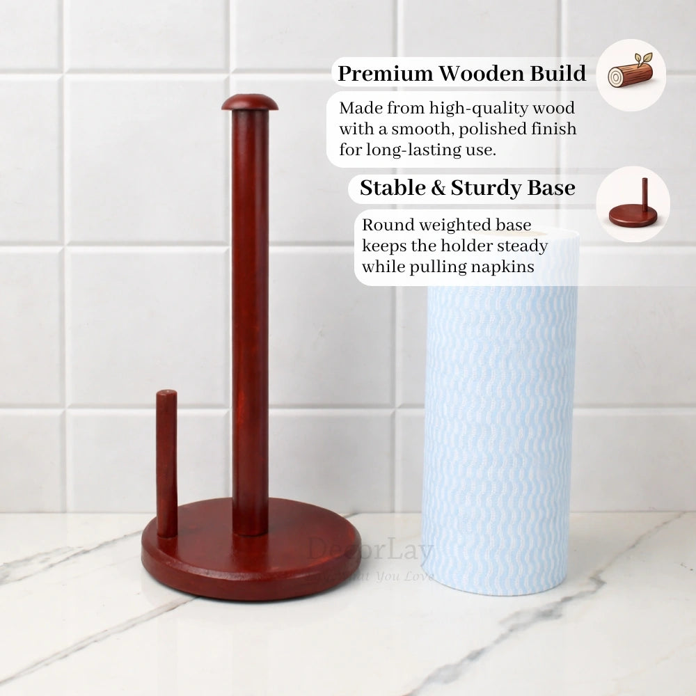 Add functionality and charm to your home with this Wooden Tissue Paper Roll Holder, designed to keep napkins organized and always within easy reach. Crafted with a sturdy metal frame and wooden accents, it brings a warm, modern aesthetic to any kitchen, dining area, or bathroom. The compact design maximizes space without compromising utility, making it ideal for small counters or tabletops. Built to withstand daily use, it blends effortlessly into your decor while helping to solve those day-to-day clutter issues.
